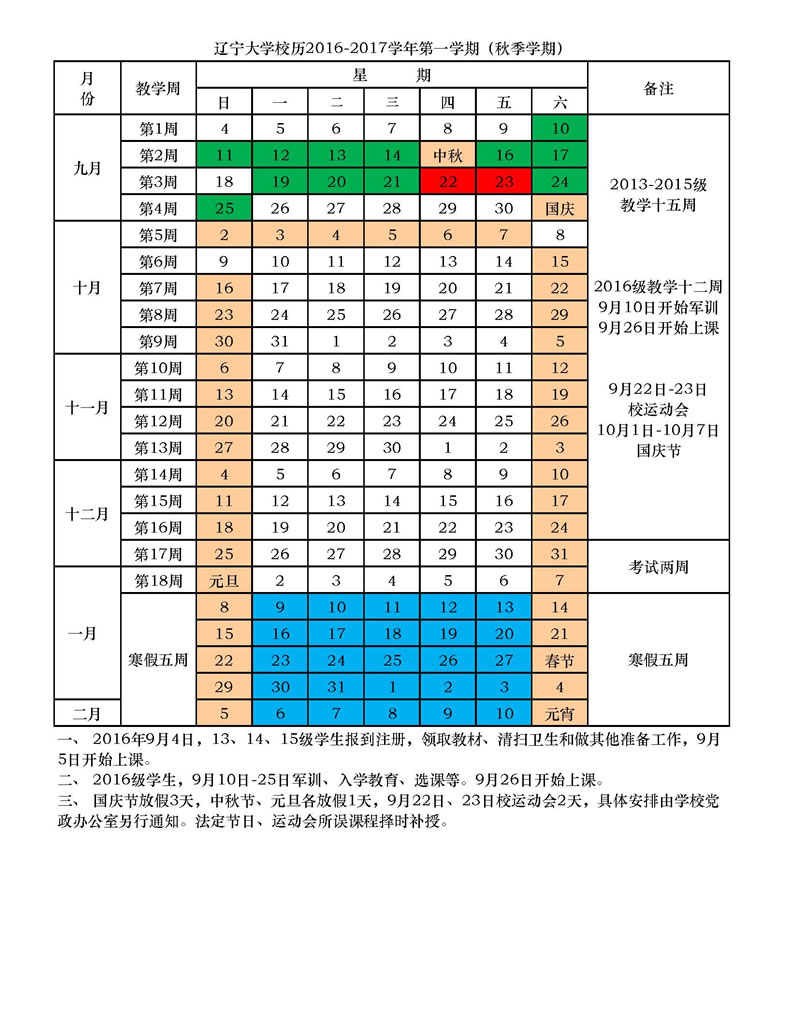 2016-2017学年第一学期(秋季学期)校历-国产一区二区日本在线